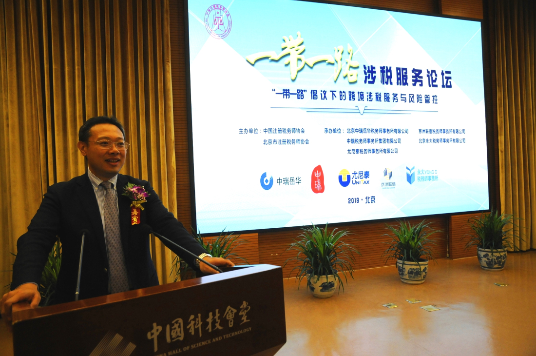 本次論壇由中國注冊稅務師協會、北京市注冊稅務師協會主辦,北京中瑞岳華稅務師事務所、中瑞稅務師事務所、尤尼泰稅務師事務所、京洲聯信稅務師事務所、北京永大稅務師事務所承辦。國家稅務總局、中國注冊稅務師協會、北京市注冊稅務師協會、中國施工企業管理協會、上海海關學院,以及部分涉稅專業服務機構、跨境企業的代表近200人出席論壇。中國注冊稅務師協會副會長兼秘書長李林軍致辭。北京市注冊稅務師協會姜信、副會長呂興渭等領導出席論壇暨儀式。